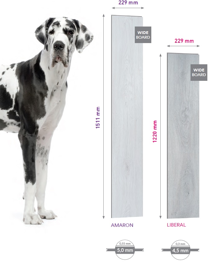 Nová dizajnová kolekcia minerálnych kompozitných podláh kolekcie AMARON WOOD s dekormi obohatenými o EIR povrchovú štruktúru real wood, prináša vylepšenia v povrchovej úprave. Okrem 5 mm verzie click je k dispozícii aj 2,5 mm variant Dryback určený na celoplošné lepenie.