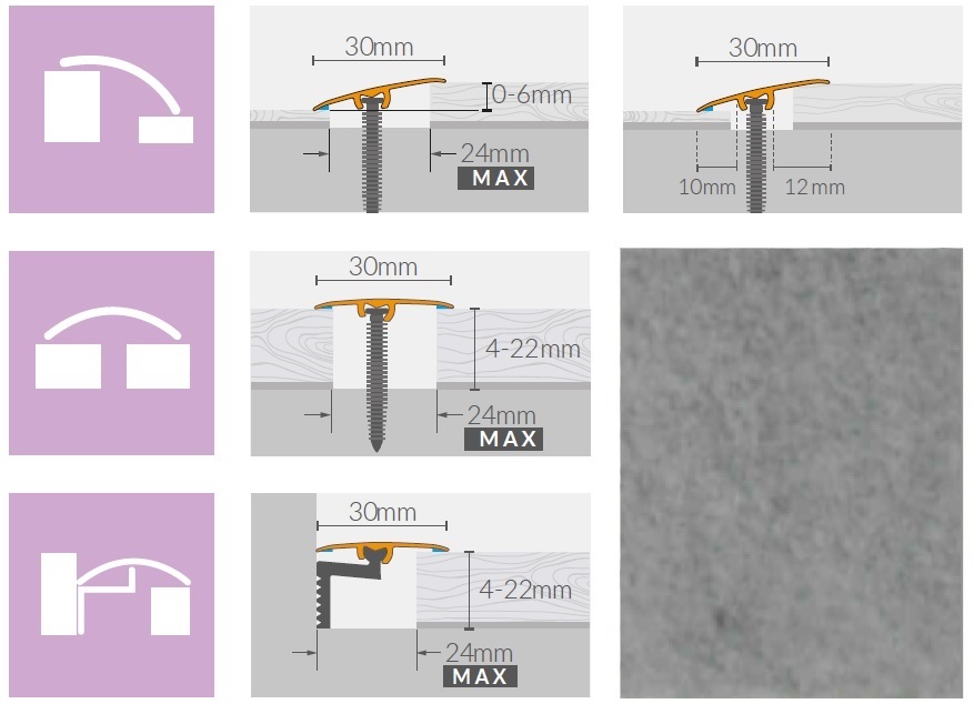 Univerzálny podlahový profil ARBITON Color systém 3v1 sa používa na prekrytie dilatačných medzier vytvorených v ploche alebo po obvode plávajúcej podlahy. Dekóry sú vytvorené tak, aby sa hodili k širokej škále najpredávanejších dekórov podlahových materiálov. Profil je prispôsobený tak, aby nevytváral bariéru pri chôdzi po podlahe. Univerzálne prevedenie 3v1 dáva možnosť profil montovať na priložené hmoždiny, samolepiacim spôsobom a taktiež aj ako ukončenie podlahy pri obvodových stenách. Súčasťou balenia je aj spojka umožňujúca dĺžkové napojenie viacerých profilov za sebou a rovnako aj výškovo upraviteľný adaptér na použitie k viacerým hrúbkam podlahovín.