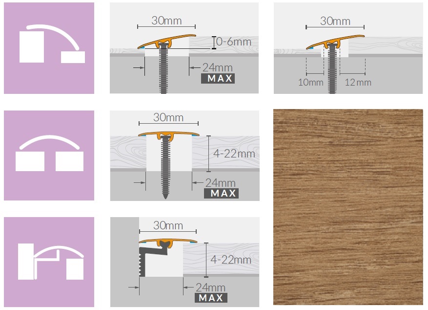 Univerzálny podlahový profil ARBITON Color systém 3v1 sa používa na prekrytie dilatačných medzier vytvorených v ploche alebo po obvode plávajúcej podlahy. Dekóry sú vytvorené tak, aby sa hodili k širokej škále najpredávanejších dekórov podlahových materiálov. Profil je prispôsobený tak, aby nevytváral bariéru pri chôdzi po podlahe. Univerzálne prevedenie 3v1 dáva možnosť profil montovať na priložené hmoždiny, samolepiacim spôsobom a taktiež aj ako ukončenie podlahy pri obvodových stenách. Súčasťou balenia je aj spojka umožňujúca dĺžkové napojenie viacerých profilov za sebou a rovnako aj výškovo upraviteľný adaptér na použitie k viacerým hrúbkam podlahovín.