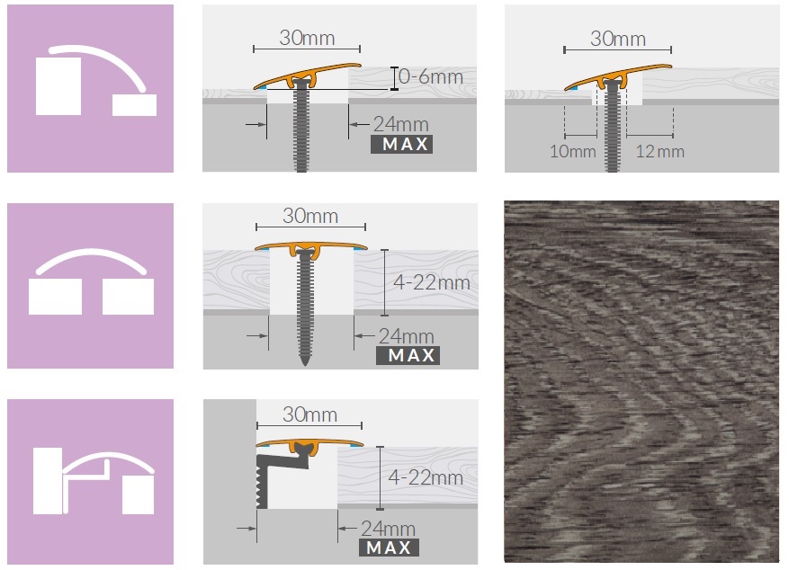 Univerzálny podlahový profil ARBITON Color systém 3v1 sa používa na prekrytie dilatačných medzier vytvorených v ploche alebo po obvode plávajúcej podlahy. Dekóry sú vytvorené tak, aby sa hodili k širokej škále najpredávanejších dekórov podlahových materiálov. Profil je prispôsobený tak, aby nevytváral bariéru pri chôdzi po podlahe. Univerzálne prevedenie 3v1 dáva možnosť profil montovať na priložené hmoždiny, samolepiacim spôsobom a taktiež aj ako ukončenie podlahy pri obvodových stenách. Súčasťou balenia je aj spojka umožňujúca dĺžkové napojenie viacerých profilov za sebou a rovnako aj výškovo upraviteľný adaptér na použitie k viacerým hrúbkam podlahovín.