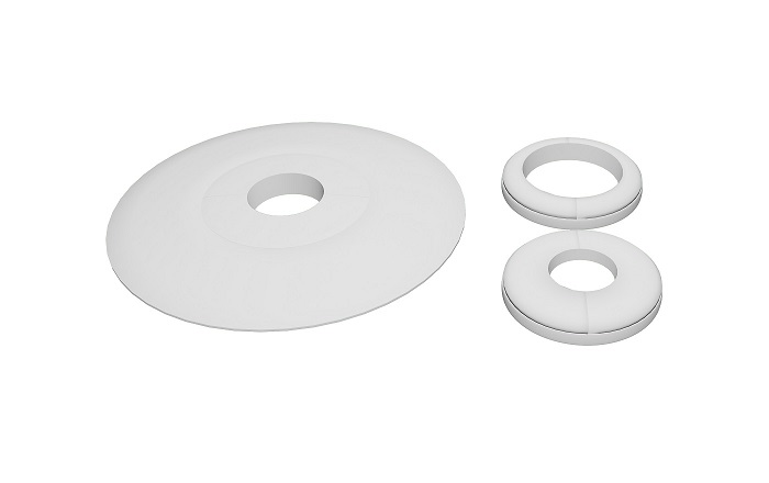 Výrobok slúži na prekrytie dilatečnej medzery medzi podlahou a riadiatorovou trubkou . Balenie obsahuje 2 ks radiatorových roziet a náhradné vymeniteľné adaptéry pre priemery potrubia : 15mm , 18mm a 22mm . Jednoduchá montáž bez použitia náradia a lepidla . Dostupné vo viacerých farebných odtieňoch dreva a kovu .