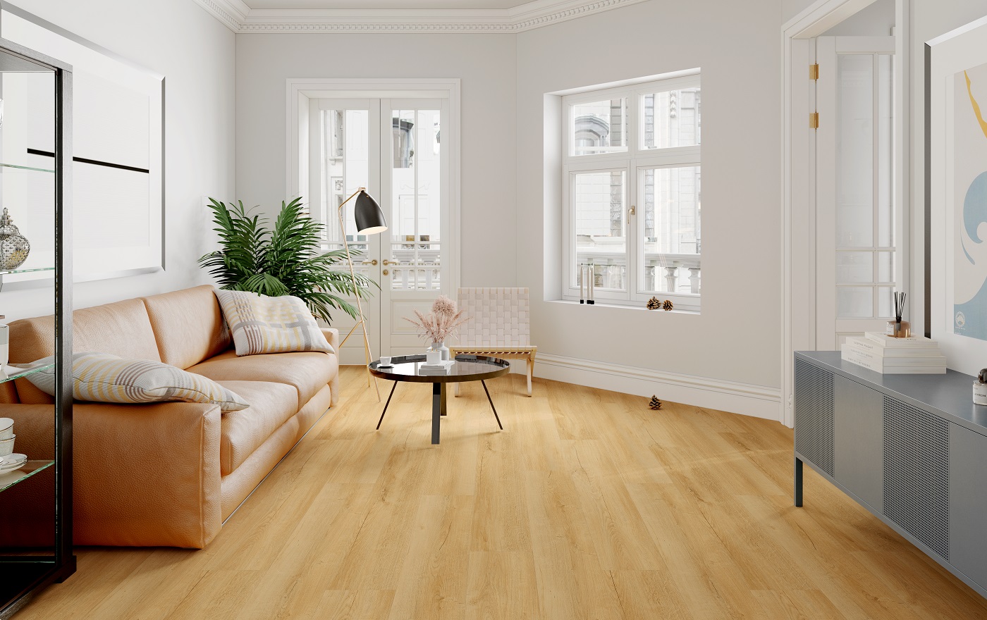 100% vodeodolná podlaha s možnosťou univerzálnej inštalácie. Okrem inštalácie plávajúcim spôsobom je možné podlahu aj celoplošne nalepiť a obmedziť tak počet nevyhnutných dilatačných škár, prípadne ju inštalovať na elektrický 80W vyhrievací film. Trieda použitia 31 umožňuje podlahu inštalovať do všetkých namáhaných priestorov v domácnosti = trieda 31.